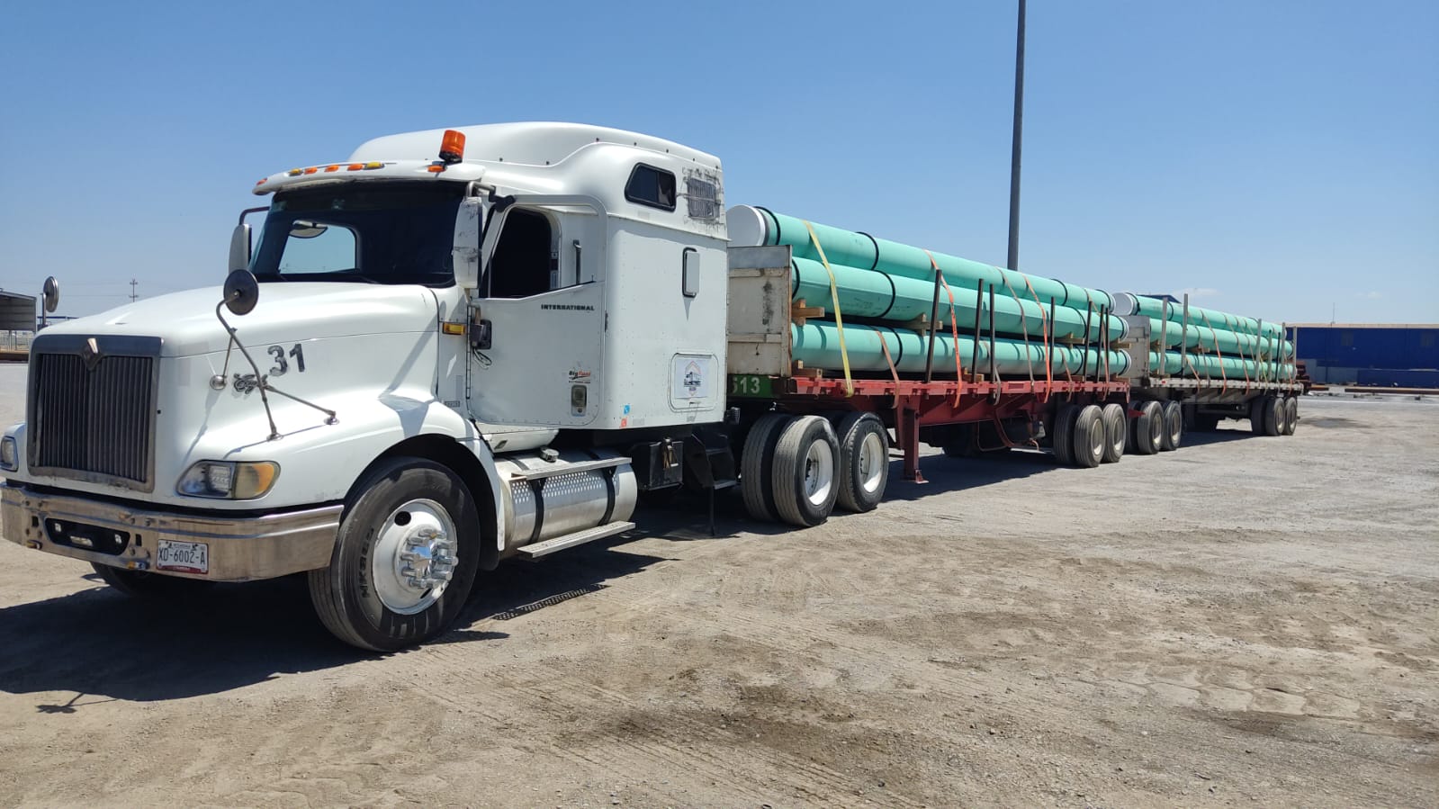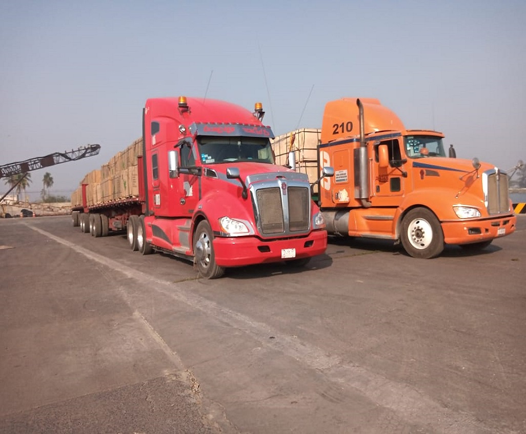 Traslado de tuberías en camion doble plataforma. Saliendo del puerto [...]