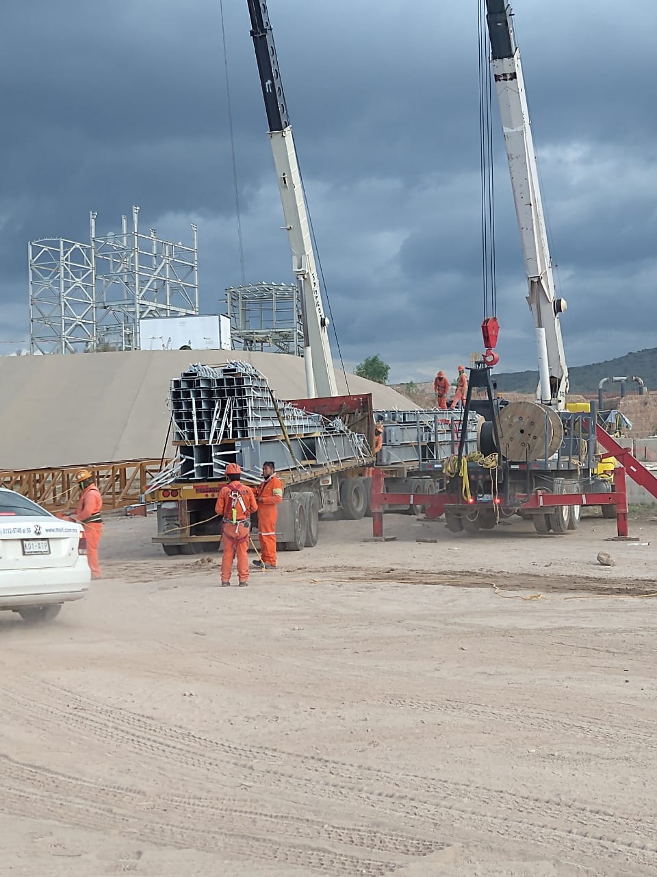 Traslados de vigas estructurales, en doble plataforma para la ciudad [...]