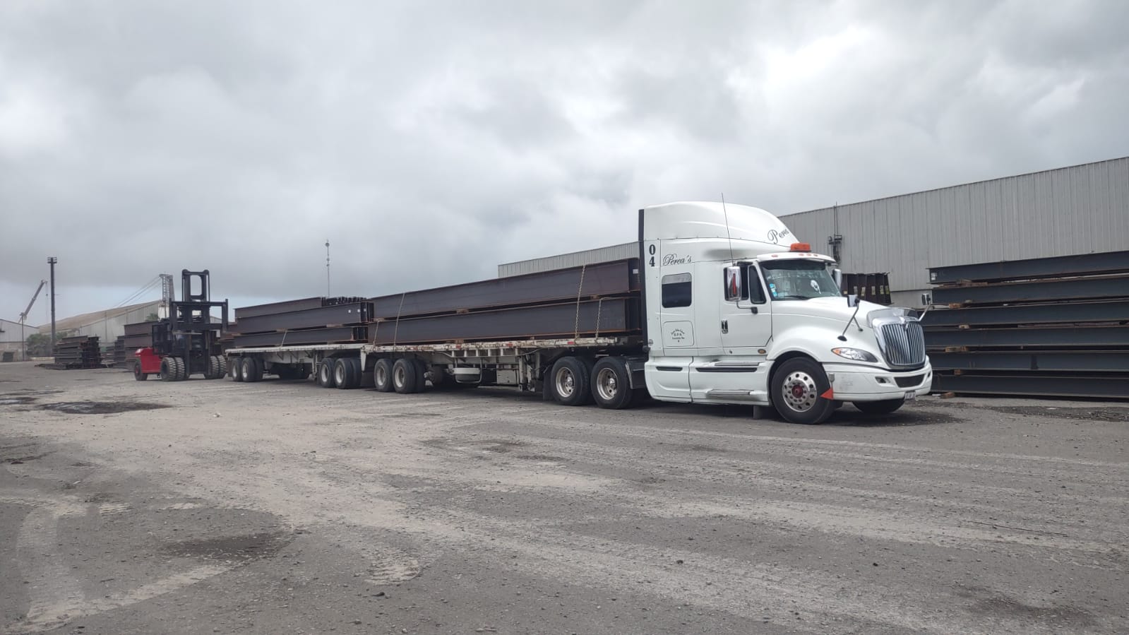 Traslado en doble plataforma de vigas de acero, del puerto [...]